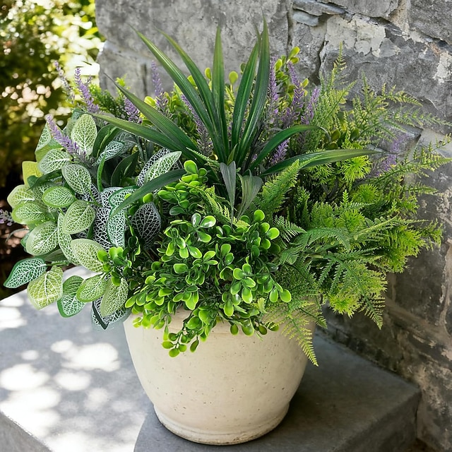 Venkovní umělé rostliny odolné proti UV záření - 12 kytic, realistické umělé eukalyptové kapradiny, levandulové zeleně na terasu, zahradu, přední verandu, dekoraci, odolné proti povětrnostním vlivům,#18868046
