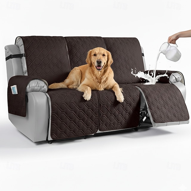 100% voděodolný prošívaný potah na polohovací pohovku pro 3 osoby, 1 kus, pratelný potah na polohovací pohovku, protiskluzový chránič nábytku s elastickými popruhy a kapsou pro psy, domácí mazlíčky, čokoláda#19521512