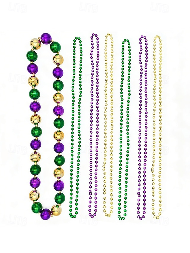 Dámská sada plastových náhrdelníků s korálky na Mardi Gras - barevné zelené fialové a zlaté perfektní pro karnevalové a maškarní párty#19526906