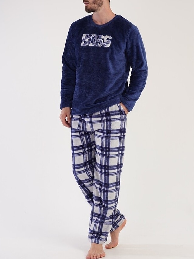 Pánské Společenské oblečení Noční prádlo Sady nočního prádla Pyžamový top a kalhoty 2 kusy Pléd stylové Na běžné nošení Pohodlné Domů Denní Flanel Pohodlné Tričkový Dlouhý rukáv Pullover Kalhoty#9692303
