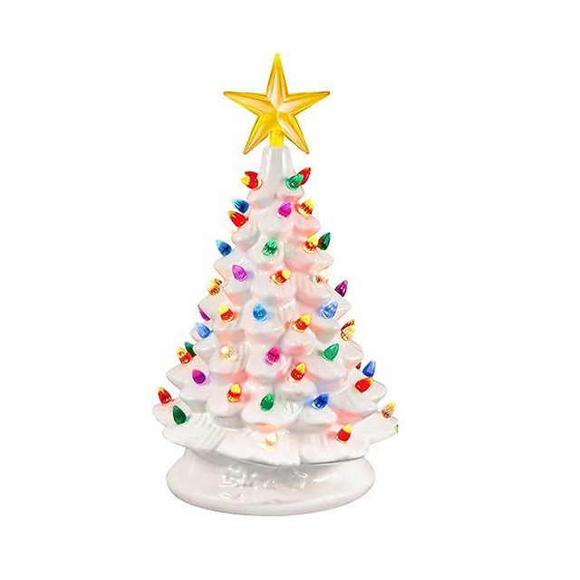 Keramický stromeček středová dekorace LED světlo ručně malovaný vintage sváteční dekorace 1ks#9734037