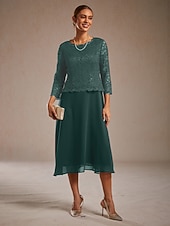 Dámské Midi šaty Šifonové šaty Elegantní Večírek Narozeniny Běžný Pevná barva 3/4 délka rukávu Tričkový Námořnická modř Léto Jaro Podzim