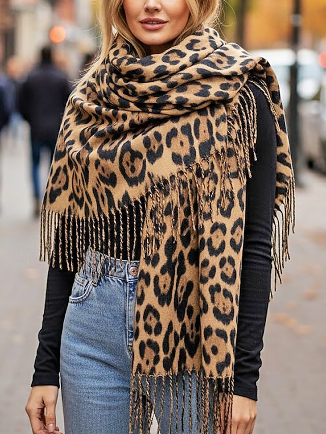 Dámská šála s leopardím vzorem – měkká a pohodlná polyesterová tkanina, dostupná v několika barvách, ideální pro běžné nošení i v zimě.#16349344