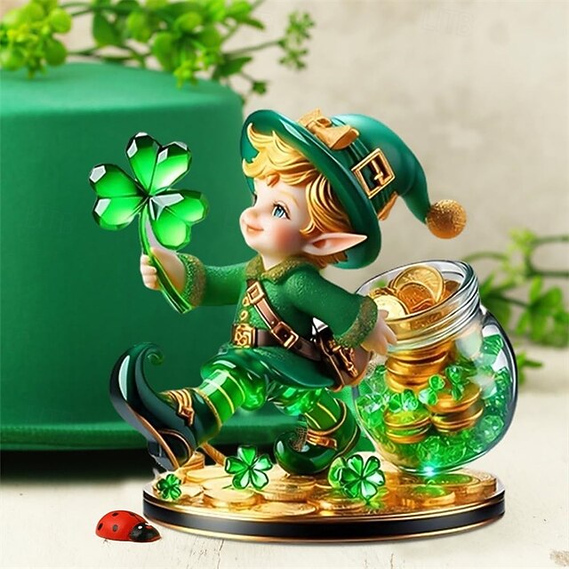 Skřítek na Den svatého Patrika, irský trojlístek na stůl, 2D akrylová víceúčelová bytová dekorace#10711702