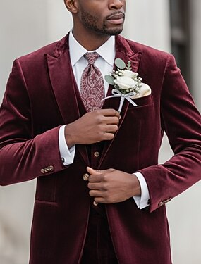 Pánské Sametový oblek Svatba na pláži Jarní svatba Černá Bordó Jaro léto Oblek Kolopy do špičky Večírek Formální Jednobarevné Na míru Sada 3 kusů Jednořadové se dvěma knoflíky