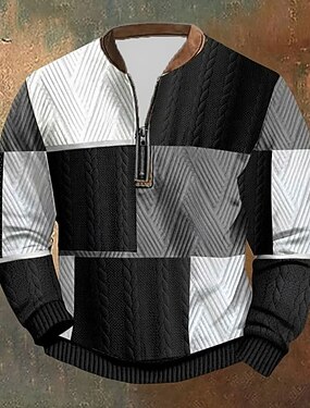 Pánské Geometrické tvary Potisk Mikina Mikiny Dlouhý rukáv Mikina Čtvrtletní zip Vintage Retro Tisk Dovolená Jdeme ven Tisk Podzim Zima