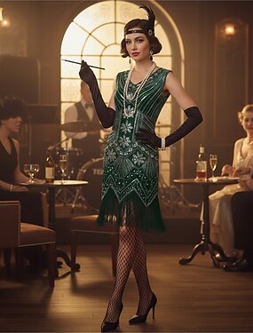 Sada Řvoucí 20s 20. léta 20. století Bubenové šaty Koktejlky s příslušenstvím Velký Gatsby Buben dívka Flitry Třásně Střapcové třásně Flitry Maškarní kostým Dámské Krásné šaty Nový rok Retro