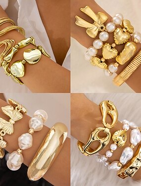 Samba Accessories Ženské zlaté tónované perlové náramky - stohovatelná sada se silnými barokními perlami otevřené manžety a korálkový srdcový charm kostým pro vystoupení
