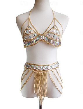 Samba taneční oblečení iridescentní drahokam zlatý řetěz břišní taneční set taneční kostým