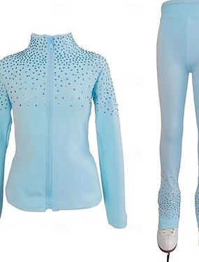 krasobruslařská bunda s kalhotami dámské dívčí krasobruslařské úbory modrá strečová tréninková soutěžní bruslařská bunda termo teplá s krystaly/kamínky dlouhý rukáv krasobruslení