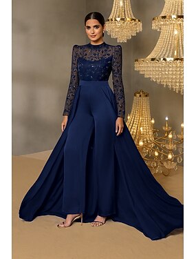 Kalhoty Na zem Korálkový výšivkový Formální šaty Šaty pro matku nevěsty Večerní šaty Plesové šaty se sukní Formální šaty Elegantní Minimalistické Na běžné nošení Dlouhý rukáv Tričkový Formáln