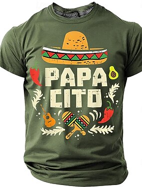 Pánské tričko papacito mexické sombrero cinco de mayo fiesta vtipné tričko ke Dni otců s potiskem ležérní krátký rukáv olivově zelená chilli paprička avokádo maracas dárek značkové oblečení oblečení