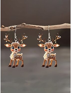 Dámské vánoční dárkové akrylové náušnice se sobami, roztomilý sváteční design se santovou čepicí, zábavný sváteční doplněk na večírky a setkání.