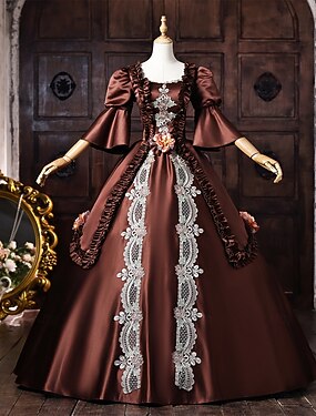 Rokoko Barroco Plesové Na zem Šaty Plesové Dlouhé rukávy Princeznovské Pro nevěstu Krajka Květinový Plesové šaty Hranatý Maškarní kostým Dámské Královský předvečer Všech svatých Karneval Plesov