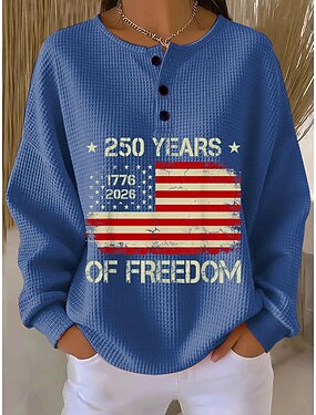 Den nezávislosti Americký výroční Patriotický Dámské Mikiny grafika Písmeno Móda Příležitostný Tisk Dlouhý rukáv Kulatý výstřih Příležitostné Ulice Knoflíky