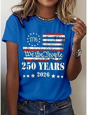 Den nezávislosti Americký výroční Patriotské dámské tričko Tisk Grafika Vlajka Písmeno Stylové Klasické Ležérní Krátký rukáv Kulatý výstřih Běžné vršky Každodenní Modrá Černá Bílá Červená Léto Jaro