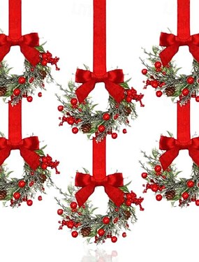 6 ks malých vánočních věnců, 6" mini vánoční věnce do skříněk, malé věnce do kuchyňské linky, okna, dveře, farmářské vánoční dekorace, párty, kroužky na svíčky, krby