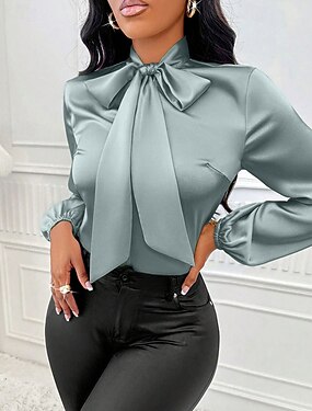 Dámské Košile Elegantní Saténový top Saténová košile Mašle Bez vzoru Elegantní stylové Základní Dlouhý rukáv Kravata Krk Běžné topy Denní Jdeme ven Trávová zelená Jaro Podzim