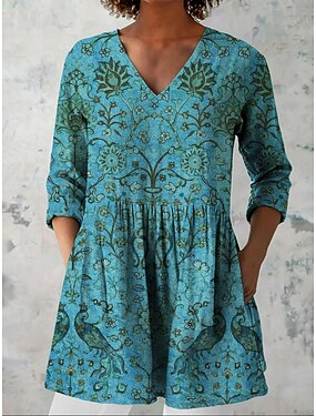 Dámské Halenka Tisk Květinový Grafika prázdniny Vinobraní Denní 3/4 délka rukávu Do V Běžné topy Denní Dovolená Jdeme ven Vodní modrá Fialová Fialová Trávová zelená Léto Jaro Podzim