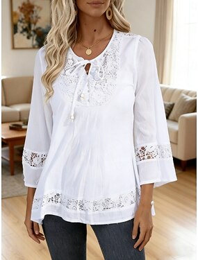 Dámské Košile Krajková košile Halenka Oblečené topy Poutko Bez vzoru Základní Moderní Do V Denní ulice Bílá Léto