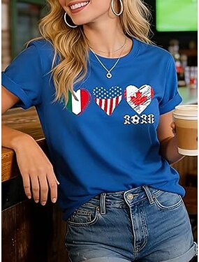 Dámské Tričko Tisk Srdce Grafika Fotbalový tým stylové Klasické Na běžné nošení Krátký rukáv Tričkový Kulatý Běžné topy Ležérní Denní Vodní modrá Černá Bílá Rubínově červená Léto Jaro