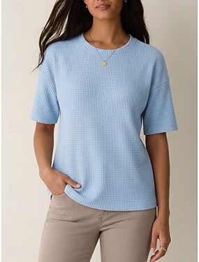 Dámské Tričko Trička Vaflově pletené topy Pevná barva Grafika Bez vzoru Klasické Moderní Na běžné nošení Krátký rukáv Tričkový Kulatý Běžné topy Ležérní Denní Jdeme ven Černá Bílá Žlutá Světlá růžov