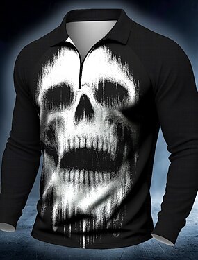 Pánské Lebky Pólo Dlouhý rukáv Polo tričko Na běžné nošení Tmavá Venkovní ulice Denní nošení 3D tisk Polo na čtvrt zip Jaro Podzim Zima Bílá Rubínově červená Vodní modrá