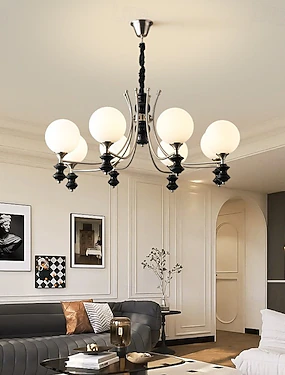 Tradiční francouzský lustr z kovového skla ve tvaru kupole s 6 světly do obývacího pokoje