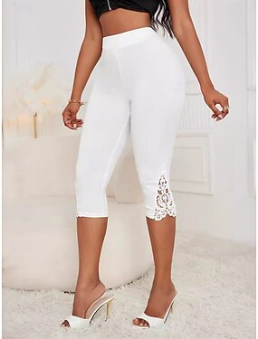 Dámské Capri kalhoty Letní šortky Šortky proti oděru Módní Šik ven Základní Telecí délka Vysoký pas Bez vzoru Krajka Prodyšnost Pohodlné Vysoká pružnost Denní Dovolená ulice Bílá Léto Jaro Slim