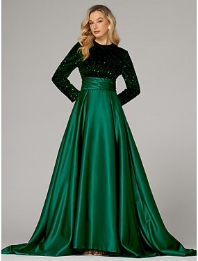 A-Linie Velmi dlouhá vlečka Na zem Večerní šaty Plesové šaty se sukní Formální šaty Elegantní Dlouhý rukáv Stojáček Formální Koktejlový večírek Podzimní svatební host Satén Flitry s Flitry