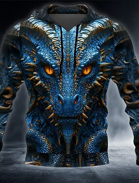 Pánské Kapuce Vodní modrá Kapuce Drak 3D tisk Chladný Podzim Zima Oblečení Mikiny s kapucí Mikiny Dlouhý rukáv