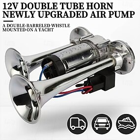 Píšťalka pro modely vlaků, super hlasitá dvoutrubková klaksonová sada, klakson s kompresorem, vhodná pro jakékoli 12V vozidlo, super hlasitá klaksonová sada pro auto. Vhodná pro obytná vozidla, SUV,