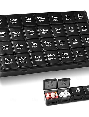 7ks plastová krabička na léky, 28 ks pouzdra s háčkem, zásuvka krabičky na pilulky, jedna zásuvka denně