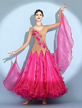 šaty na společenský tanec s krystaly / kamínky pro dámské představení, párty, dlouhý rukáv, moderní valčík, taneční kostýmy