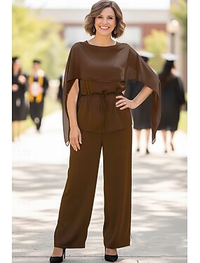 Overal Na zem Kombinéza Šaty pro matku nevěsty Bez rukávů Jedno rameno Elegantní Jednoduchý Minimalistické Formální Svatební host Stretch šifon Stretch Crepe s Mašle Boční řasení
