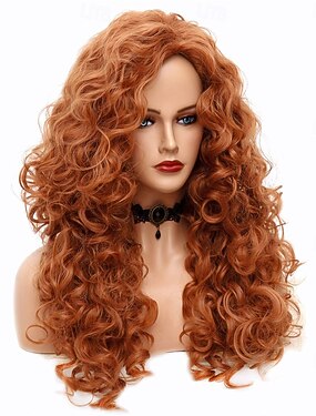 Dlouhé vlnité paruky 28 palců (62 cm) s přírodní měděnou liškou, rudou, syntetickou, kudrnatou parukou pro ženy