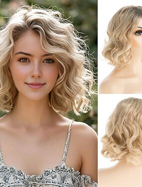 Krátká vlnitá blond paruka pro ženy syntetická boční část halloween cosplay paruka