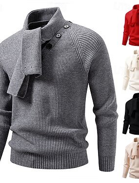 Pánské Svetr Pulovrový svetr Rýhovaný Plést Běžné topy Konvertibilní Pletený Bez vzoru Šátek Úplet Moderní Ležérní Denní nošení Oblečení Podzim Zima Černá Bílá M L XL
