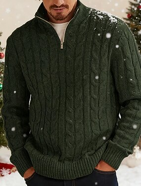 Pánské Vánoční svetr Vánoční svetry Svetr Sváteční svetr Pulovrový svetr Rýhovaný Kabel Plést Běžné topy Pletený Bez vzoru Čtvrtletní zip Vinobraní Zahřívací Denní nošení Jdeme ven Oblečení Podzim