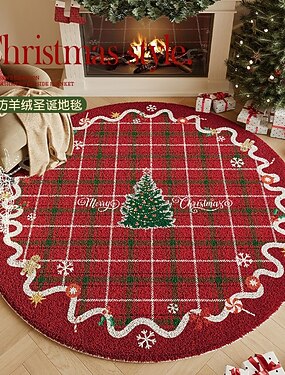 Vánoční kulatý koberec, útulný koberec z umělé ovčí srsti, silný koberec do obývacího pokoje, sváteční dekorace, elegantní koberec na konferenční stolek, měkký koberec do ložnice, akcentový koberec