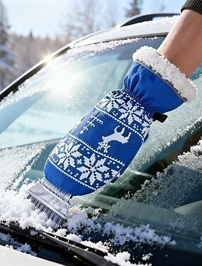 zimní odmrazovač do auta vše v jednom &sada na odklízení sněhu - odolná škrabka na led (ne na led) &Sada teplých rukavic s vyztuženou rukojetí na střechu - přenosné zimní autopříslušenství pro řidiče