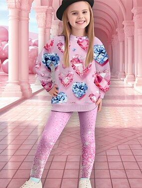 Dívčí 3D Srdce Grafika Set mikiny a tepláků Sady oblečení Růžová Dlouhý rukáv 3D tisk Podzim Zima Aktivní Módní Denní Děti 4 roky + Venkovní Dovolená Rande Běžný