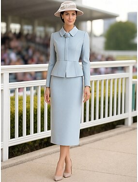 Dvoudílné Pouzdrové Ke kolenům Derby šaty Šaty pro matku nevěsty Dlouhý rukáv Tričkový Elegantní Kentucky Derby Strečová látka Sako šaty s Jednobarevné