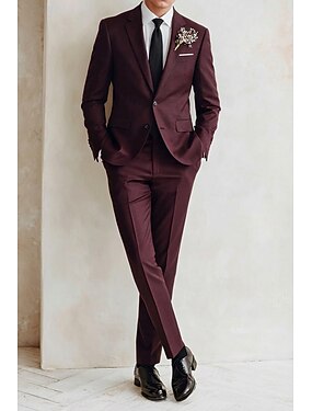 Pánské Smokingy Párty obleky Ležérní Rubínově červená Fialová Podzim zima Oblek Kolopy do špičky Večírek Na běžné nošení Jednobarevné Na míru Sada 2 kusů Jednořadé s jedním knoflíkem
