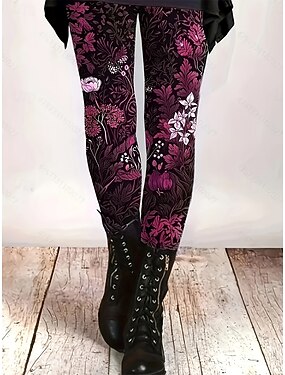 Dámské Kalhoty Legíny Pohodlné legíny prázdniny Vinobraní Šik ven Plná délka Přírodní Květinový Grafika Elastický pas Tisk Pohodlný Venkovní Pohodlné Elastické Venkovní Streetwear Dovolená Fialová a