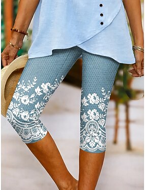 Dámské Štíhlý Legíny prázdniny Klasický styl Základní Telecí délka Capris Přírodní Květinový Grafika Tisk Pohodlné Venkovní Prodyšné Elastické Ležérní Denní Vevnitř Vodní modrá Fialová Prašná růže