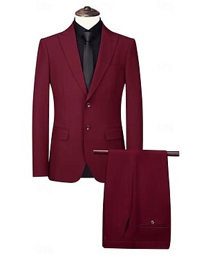 Pánské Obchodní obleky Ležérní Párty Černá Bordó Podzim Oblek Klasické klopy Na běžné nošení Formální Jednobarevné Slim Sada 2 kusů Jednořadové se dvěma knoflíky