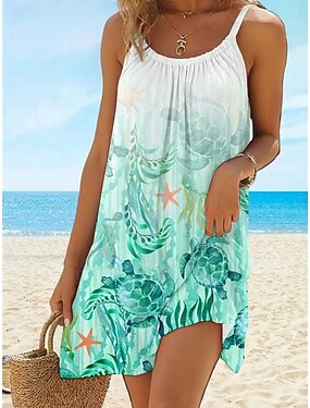 Dámské Mini šaty Plážové šaty Volnočasové šaty Slip Dress Módní Moderní Venkovní Plážové Dovolená Běžný Zvíře Bez rukávů Tričkový Vodní modrá Léto Jaro