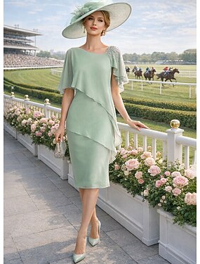 Dvoudílné Pouzdrové Ke kolenům Šaty pro svatební hosty Šaty pro matku nevěsty Bez rukávů Hranatý Elegantní Svatební host Svatebnívečírek Kostel Šifón Krajka Sako šaty s Jednobarevné