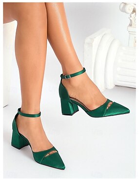 Dámské smaragdově zelené saténové lodičky - elegantní boty pro matku nevěsty na blokovém podpatku s páskem na kotníku pro zahradní svatby, venkovní hostiny &formální letní galavečery